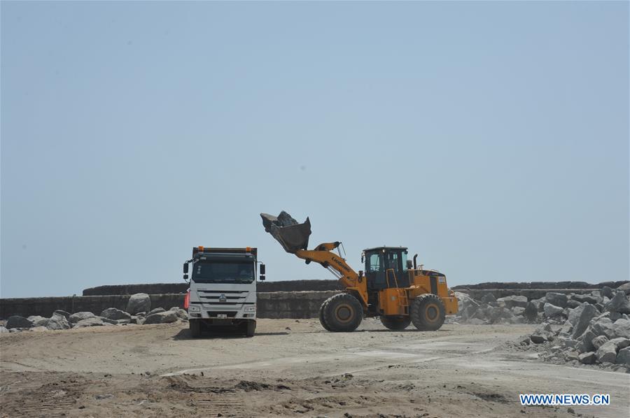 Photo taken on Oct. 27, 2020 shows the China-aided Jamestown Fishing Port Complex under construction in Accra, Ghana. The China-aided Jamestown Fishing Port Complex in Ghana is expected to boost the country's fishing industry, said the Chinese constructor in an interview with Xinhua. (Photo by Seth/Xinhua)