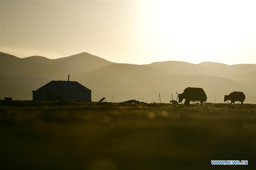 Yaks are seen at Jiatang Grassland in Chindu County, Yushu Tibetan Autonomous Prefecture, northwest China's Qinghai Province, Oct. 28, 2020. (Xinhua/Zhang Long)