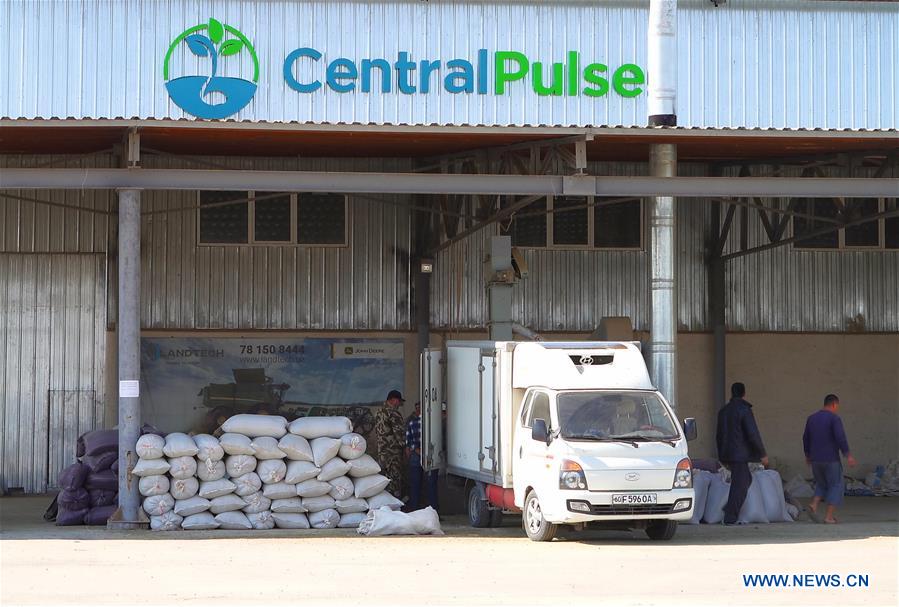 Photo taken on Oct. 12, 2020 shows mung beans waiting to be processed at an agricultural company in Samarkand region, central Uzbekistan. (Photo by Zafar Khalilov/Xinhua)
