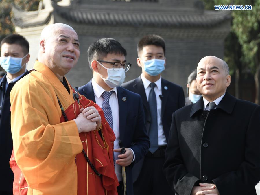 Cambodian King Norodom Sihamoni visits the Da Ci'en Temple in Xi'an, northwest China's Shaanxi Province, Nov. 1, 2020. Sihamoni paid a visit to Shaanxi from Oct. 30 to Nov. 1. (Xinhua/Cai Xinyi)