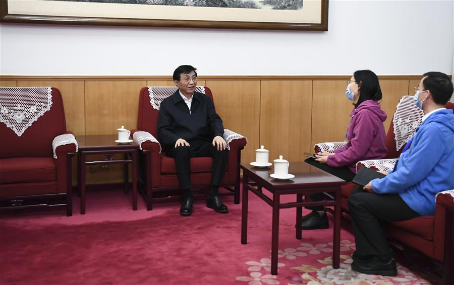 Wang Huning answers the census inquiries while taking part in China's seventh population census in the Zhongnanhai leadership compound in Beijing, capital of China, Nov. 2, 2020. China on Sunday started its seventh national population count. (Xinhua/Xie Huanchi)