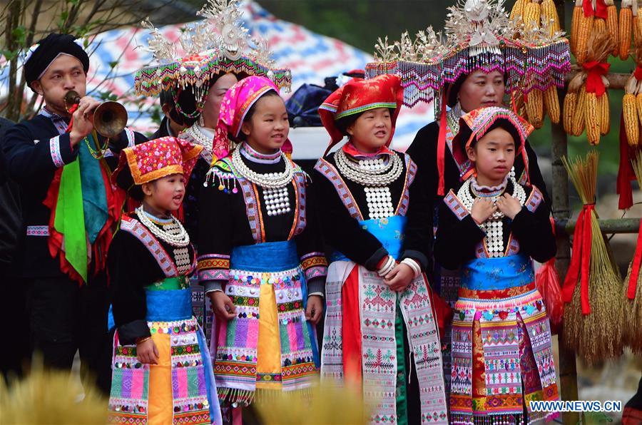 People of the Yao ethnic group watch performances during the folk Panwang Festival as well as a harvest festival in Rongshui Miao Autonomous County, south China's Guangxi Zhuang Autonomous Region, Nov. 1, 2020. (Xinhua/Huang Xiaobang)
