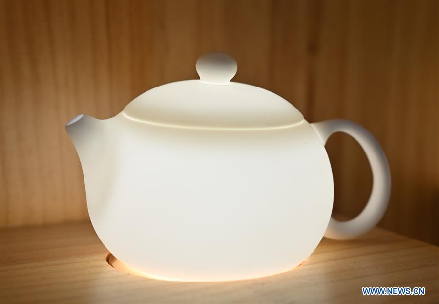 Photo taken on Oct. 20, 2020 shows a piece of white porcelain teaware crafted by artisan Xu Jinbao in Dehua County, Quanzhou, southeast China's Fujian Province. A major porcelain-production center, Dehua in southeast China's Fujian Province has been making export porcelain since the Song Dynasty (960-1279 AD). The plain white porcelain crafted here was later dubbed "Blanc de Chine (White from China)" by the French and gained worldwide fame. As one of the traditional dragon kilns with long, thin and slightly sloped structures, the only remaining ancient kiln in Dehua is the Yueji Kiln, which has been burning continuously for more than 400 years. While the city preserves the ancient kiln, there are new-generation artisans seeking creativity on top of heritage. Xu Jinbao, who'd rather define himself as a "technical artisan", is among such innovators in the porcelain manufacturer circle of Dehua. After graduating from Shanghai Jiao Tong University with a degree in materials science, Xu returned to Dehua and set up a technology company which aims at finding improved ceramic solutions by making tweaks to the ingredients. Xu's ceramics products feature better heat-resistant, corrosion-proof and absorption performances than their older, traditional counterparts. He and colleagues have already debuted ceramic kettles which work on direct heat, and ceramic filters for water purifiers will be introduced soon. Like Xu Jinbao and his company, a growing number of Dehua-based porcelain enterprises have optimized production via technical upgrades, securing orders with a continuous supply of state-of-the-art, quality "Blanc de Chine" to global clients. (Xinhua/Song Weiwei)