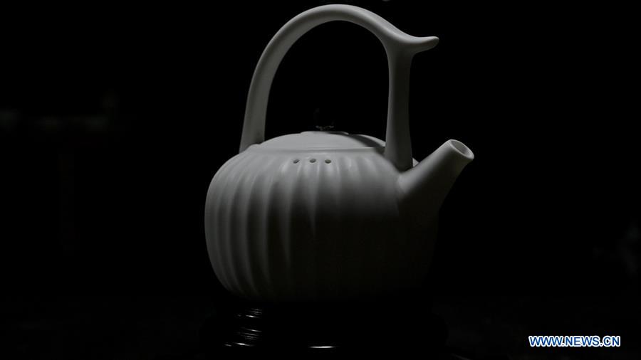 Photo taken on Oct. 20, 2020 shows a white porcelain kettle developed by artisan Xu Jinbao that can work on direct fire in Dehua County, Quanzhou, southeast China's Fujian Province. A major porcelain-production center, Dehua in southeast China's Fujian Province has been making export porcelain since the Song Dynasty (960-1279 AD). The plain white porcelain crafted here was later dubbed "Blanc de Chine (White from China)" by the French and gained worldwide fame. As one of the traditional dragon kilns with long, thin and slightly sloped structures, the only remaining ancient kiln in Dehua is the Yueji Kiln, which has been burning continuously for more than 400 years. While the city preserves the ancient kiln, there are new-generation artisans seeking creativity on top of heritage. Xu Jinbao, who'd rather define himself as a "technical artisan", is among such innovators in the porcelain manufacturer circle of Dehua. After graduating from Shanghai Jiao Tong University with a degree in materials science, Xu returned to Dehua and set up a technology company which aims at finding improved ceramic solutions by making tweaks to the ingredients. Xu's ceramics products feature better heat-resistant, corrosion-proof and absorption performances than their older, traditional counterparts. He and colleagues have already debuted ceramic kettles which work on direct heat, and ceramic filters for water purifiers will be introduced soon. Like Xu Jinbao and his company, a growing number of Dehua-based porcelain enterprises have optimized production via technical upgrades, securing orders with a continuous supply of state-of-the-art, quality "Blanc de Chine" to global clients. (Xinhua/Song Weiwei)