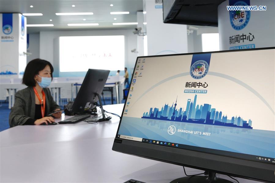 A reporter works at the media center of the third China International Import Expo (CIIE) in Shanghai, east China, Nov. 3, 2020. (Xinhua/Zhang Yuwei)