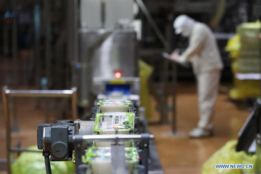A staff member works at a tofu plant of Pulmuone in Eumseong-gun of Chungcheongbuk-do, South Korea, Nov. 3, 2020. Pulmuone, a leading food company in South Korea, will be an exhibitor at the third China International Import Expo (CIIE), which will take place from Nov. 5 to 10 in Shanghai. (Xinhua/Wang Jingqiang)