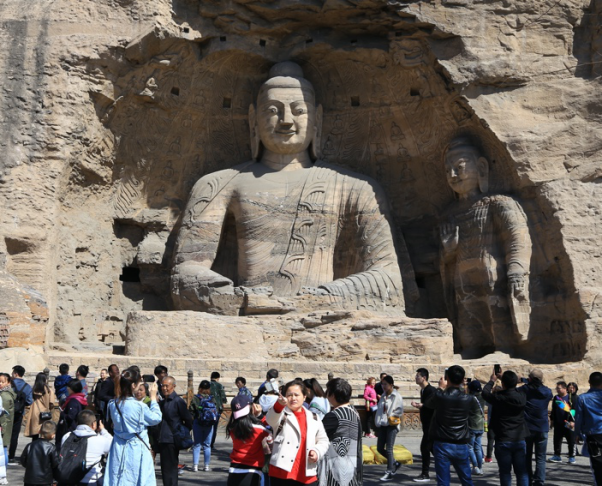 Tourists visit the Yungang Grottoes in Datong, North China's Shanxi Province, April 6, 2019. (People's Daily Online/Ren Xuefeng)