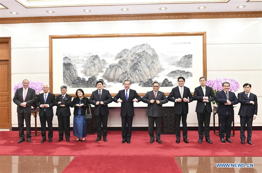 Chinese State Councilor and Foreign Minister Wang Yi meets with diplomatic envoys of the Association of Southeast Asian Nations (ASEAN) countries in Beijing, capital of China, Nov. 8, 2020. (Xinhua/Yin Bogu)