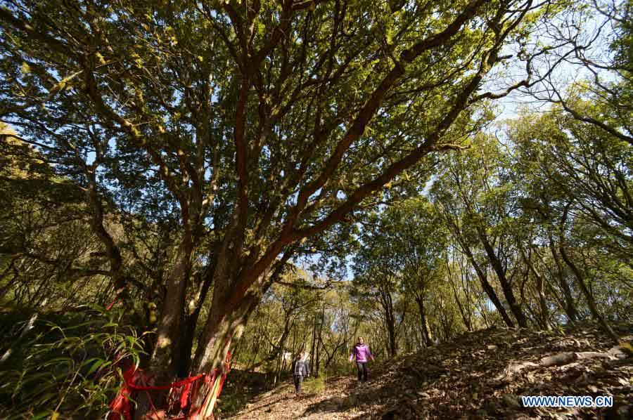 Locals walk at the Leigong Mountain National Forest Park in Leishan County of Qiandongnan Miao and Dong Autonomous Prefecture, southwest China's Guizhou Province, Nov. 12, 2020. (Xinhua/Yang Ying)