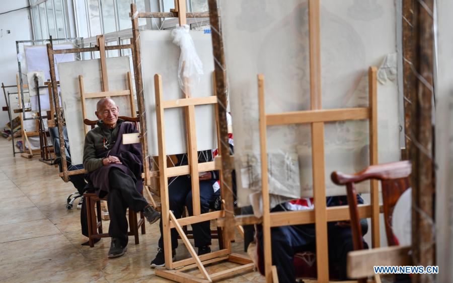 The base upgraded the production mode of traditional handicrafts and advanced poverty alleviation. With a per capita income of about 200,000 yuan (about 30,217 U.S. dollars) last year, 112 apprentices have helped their families shake off poverty by the craft of painting thangka.