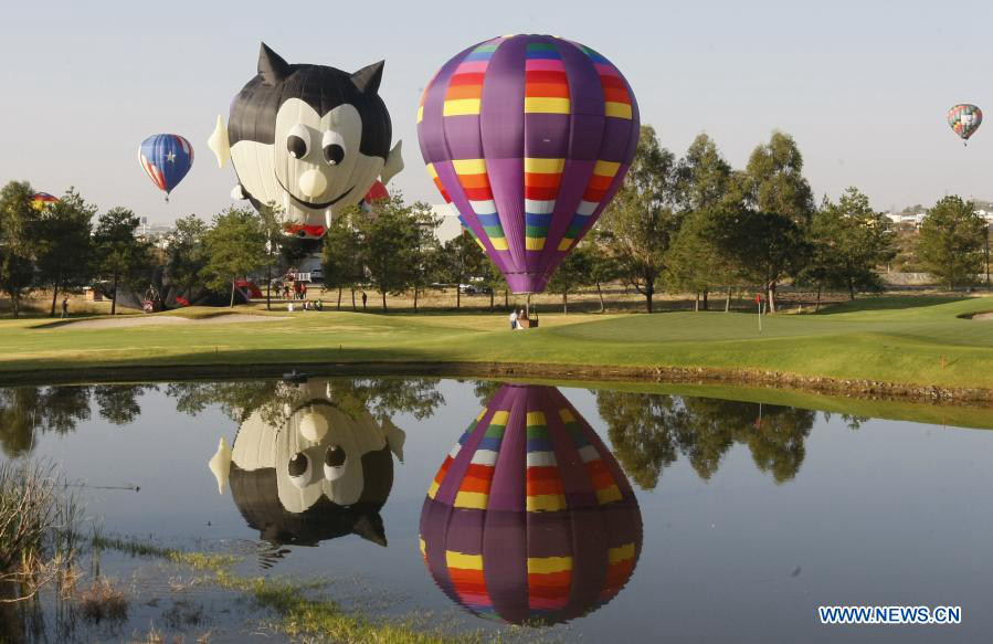 Hot air balloons are seen during the 2020 International Balloon Festival in Leon City of Guanajuato State, Mexico, on Nov. 13, 2020. (Photo by Mario Armas/Xinhua)