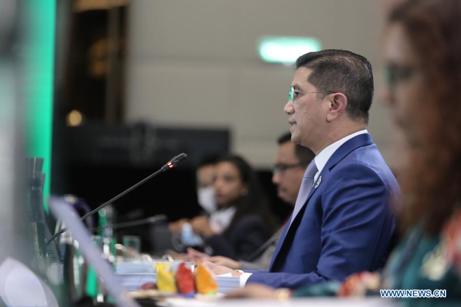 Malaysia's Minister of International Trade and Industry Mohamed Azmin Ali speaks during the virtually-held Asia-Pacific Economic Cooperation (APEC) Ministerial Meeting in Kuala Lumpur, Malaysia, Nov. 16, 2020. APEC's Post-2020 vision will promote an open, dynamic and resilient Asia-Pacific community in charting the direction of the region in the coming decades, Azmin said on Monday. (APEC/Handout via Xinhua)