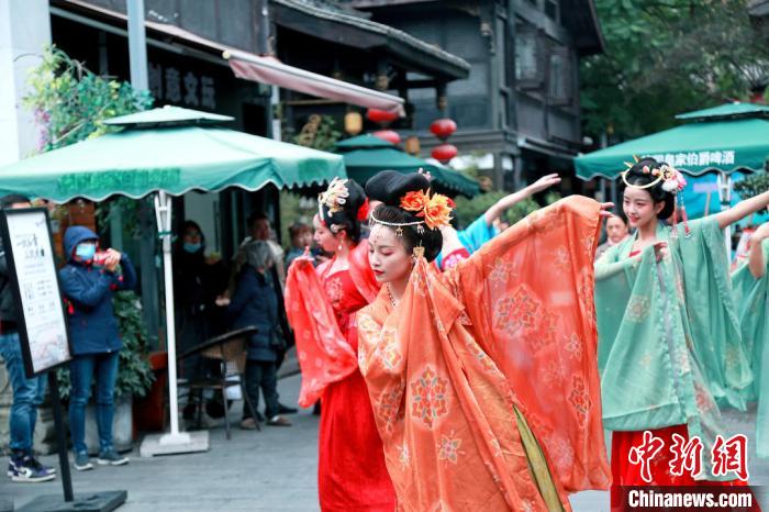 Four groups of young enthusiasts wearing Hanfu left from four different landmarks of Chengdu on Nov. 22, and arrived at Wenshufang folk culture street on the same afternoon. All the Hanfu enthusiasts, including some foreigners, then paraded down the street to celebrate the festival and show the beauty of Hanfu.