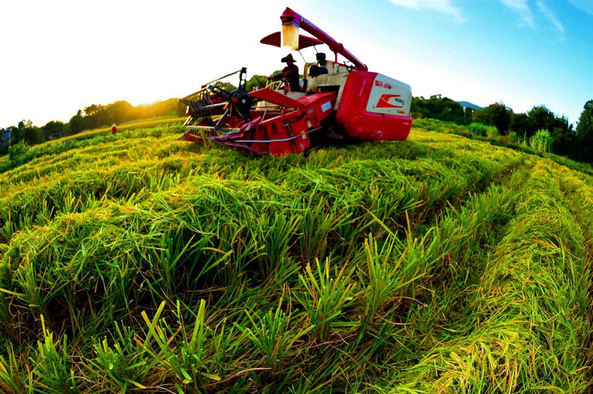 An operator drives a rice harvester in Huichang, Jiangxi province. (ZHU HAIPENG / FOR CHINA DAILY)