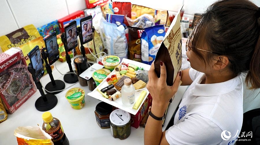 A live-streaming host promotes goods in Heihe, Heilongjiang province. (Photo/People's Daily Online)