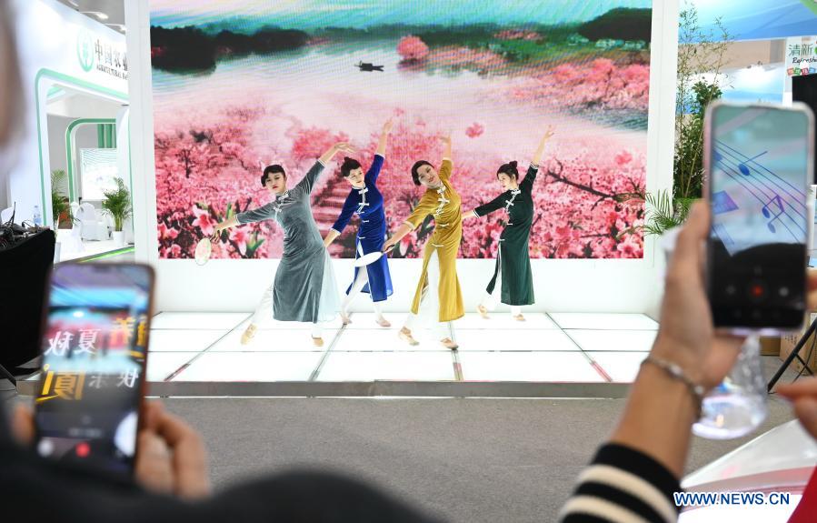 Visitors take photos of the dance performance during the 6th Maritime Silk Road (Fuzhou) International Tourism Festival in Fuzhou, southeast China's Fujian Province, Nov. 27, 2020. The 6th Maritime Silk Road (Fuzhou) International Tourism Festival kicked off in Fuzhou on Friday. (Xinhua/Lin Shanchuan)