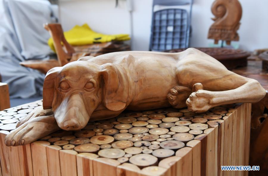 Photo taken on Nov. 29, 2020 shows a wood carving product from Indonesia during the 17th China-ASEAN Expo in Nanning, south China's Guangxi Zhuang Autonomous Region. The handicrafts exhibited on the 17th China-ASEAN Expo have attracted a lot of attention. (Xinhua/Lu Boan)