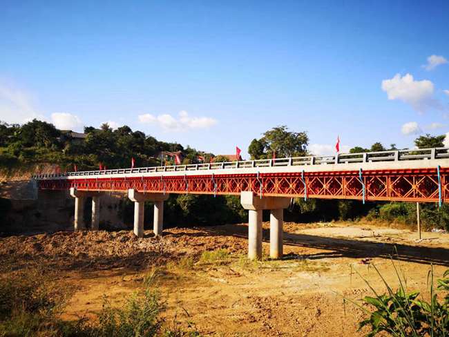 Photo shows a bridge in a village of Vientiane, Laos. The bridge was built under a poverty alleviation project carried out by Guangxi Zhuang Autonomous Region in southern China. Photo courtesy of the poverty alleviation work office from Guangxi Zhuang Autonomous Region