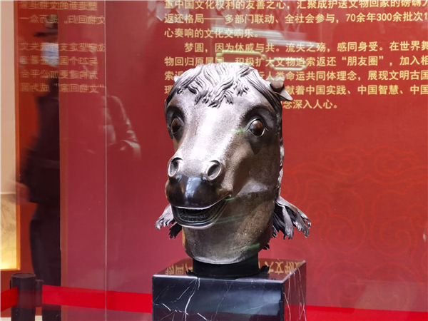 The horse-head statue is so far the first animal-head statue to have come back to Yuanmingyuan. It was donated by the late Hong Kong-Macau tycoon and philantrophist Stanley Ho to the country last year, and the National Cultural Heritage Administration recently handed it over to the administration of Yuanmingyuan ruins.