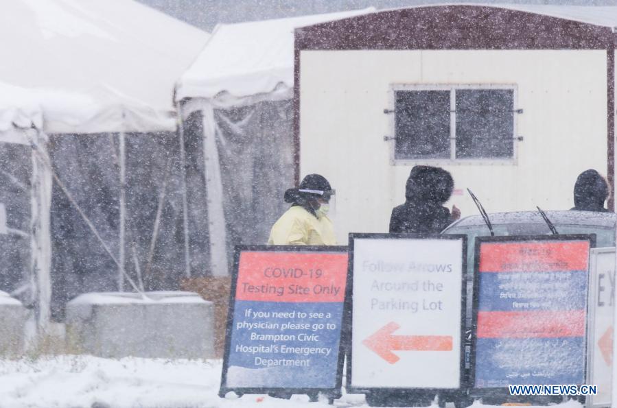 People arrive at a COVID-19 assessment center in Brampton, Ontario, Canada, on Dec. 1, 2020. Canada continued seeing sharply increased COVID-19 cases, with a total of 382,812 COVID-19 cases and 12,195 fatalities as of Tuesday evening, according to CTV. (Photo by Zou Zheng/Xinhua)