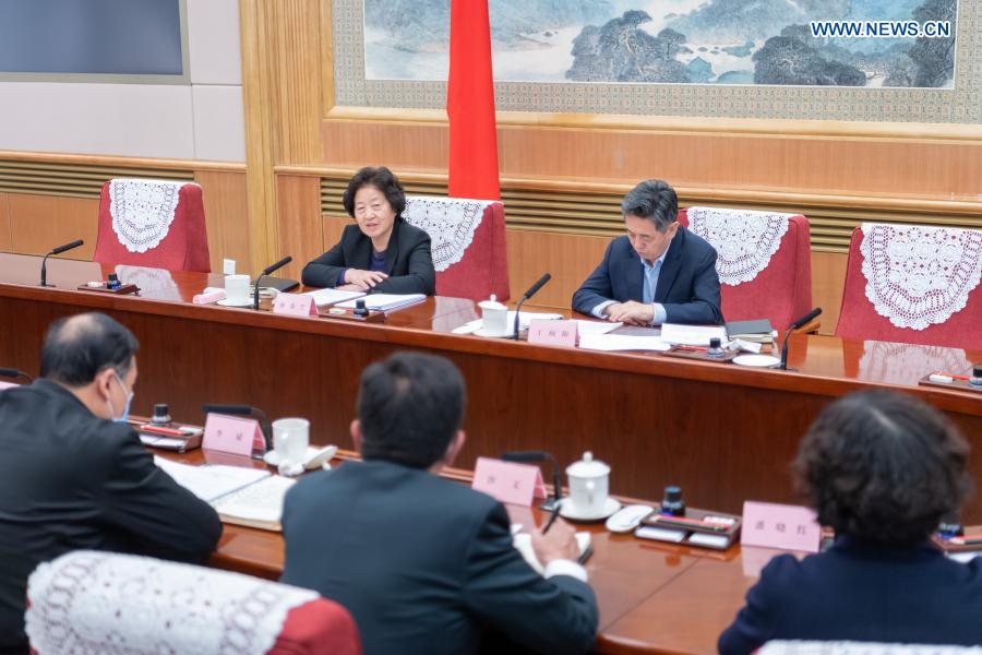 Chinese Vice-Premier Sun Chunlan, also head of the AIDS working committee of the State Council, presides over a symposium in Beijing, capital of China, Dec. 1, 2020, which marks the 33rd World AIDS Day. Sun visited Beijing Youan Hospital on Tuesday to inspect the work of HIV/AIDS prevention and treatment. (Xinhua/Zhai Jianlan)