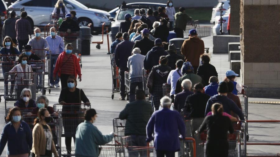 Residents wait in line outside a Costco Warehouse in Los Angeles, the United States, Nov. 20, 2020. (Photo/Xinhua)