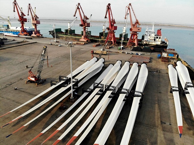 Photo shows wind power equipment to be shipped to Chile at the Lianyungang Port in Lianyungang city, east China’s Jiangsu province through the Maritime Silk Road in November. (Photo by Wang Chun/People’s Daily Online)