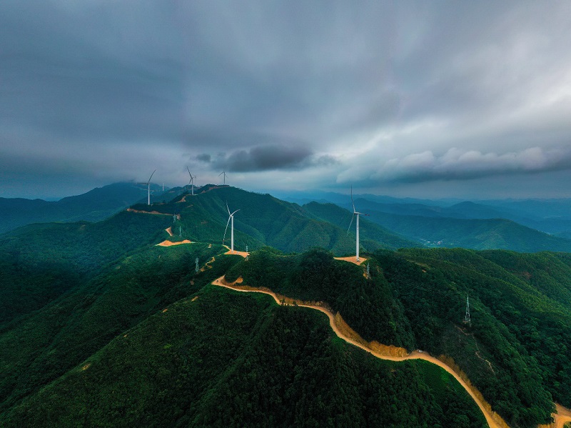 Photo shows 15 newly-installed wind power generator sets spanning over 20 kilometers in south China’s Guangxi Zhuang Autonomous Region. (Photo by He Huawen/People’s Daily Online)