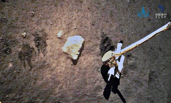 China's Chang’e-5 probe collects samples on the moon. (Photo/WeChat account of China’s lunar exploration project)