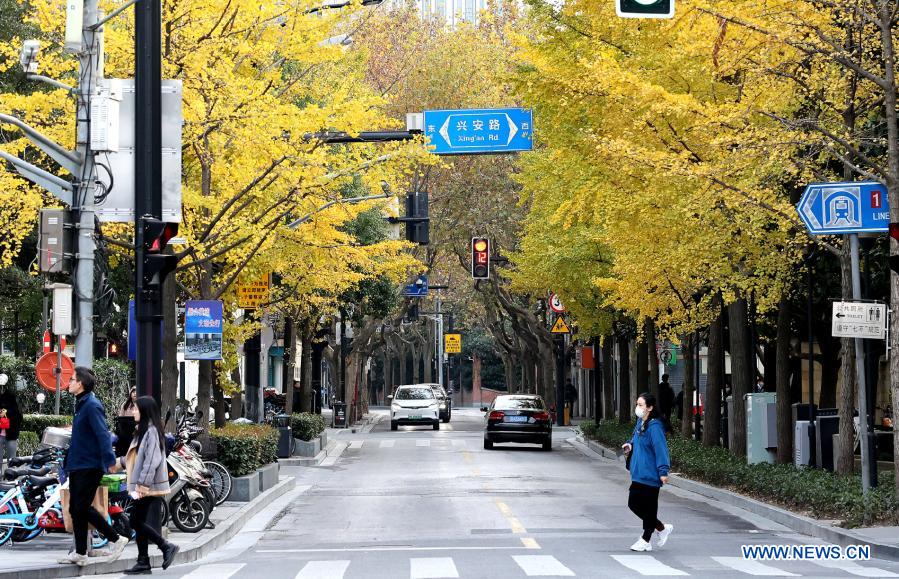 People walk on a street in Shanghai, east China, Dec. 6, 2020. (Xinhua/Chen Fei)