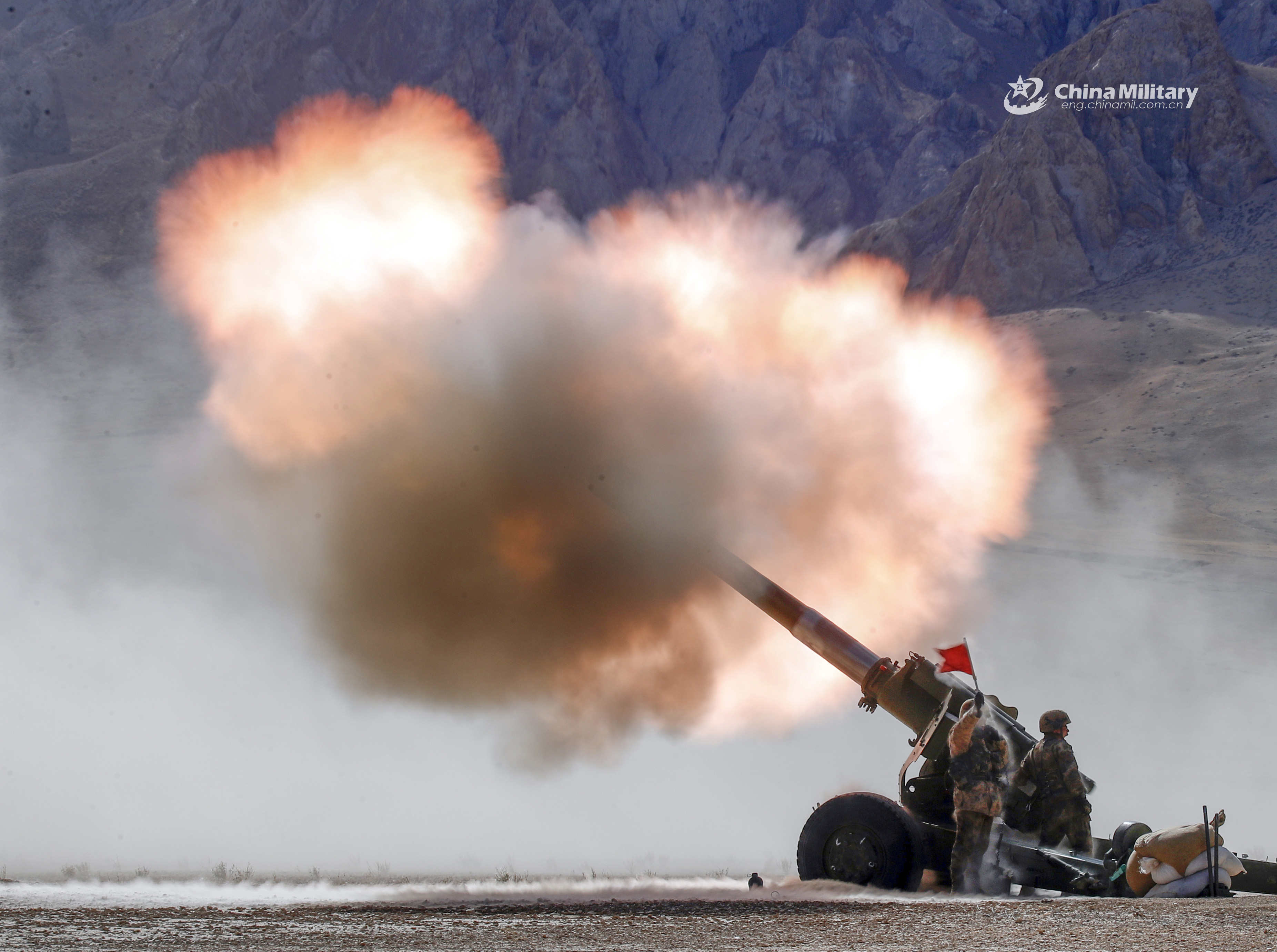 Artillerymen assigned to the PLA Xinjiang Military Command operate a PL-66 152 mm towed gun-howitzer to attack mock targets during a live-fire test in the snow-covered plateau area with an average elevation exceeding 4,500 meters in China's Xinjiang Uygur Autonomous Region in mid-November, 2020. (eng.chinamil.com.cn/Photo by Zhai Yangyang)
