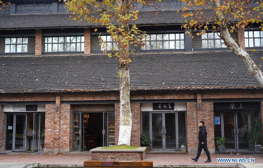 Zhou Xionghao wanders in the cultural and creative block of the porcelain art avenue in Jingdezhen, east China's Jiangxi Province, Dec. 3, 2020. Jade green gourds, bright red persimmons, and colorful cloud-shaped pendants... All of these elaborate accessories featuring traditional Chinese cultural symbols are made of porcelain and created by a young maker in Jingdezhen, east China's Jiangxi Province. Zhou Xionghao, 31, is the founder of a porcelain accessory brand. Once bored and confused with his study in porcelain making, he finally made up his mind to make porcelain accessories after one day he was inspired by a porcelain necklace brought back by a classmate. After graduation from the Jingdezhen Ceramic Institute, he has been striving to realize this dream. From the six-square-meter rental room to the four-story 2000-square-meter office building, he moved four times and each time he got closer to his goal. Now, he has founded his own porcelain accessory brand with annual sales amounting over 5 million yuan (about 765,000 U.S. dollars). In his mind, porcelain is not simply a material for making things but a language of the Chinese culture. By making porcelain wearable, he wants to make more people appreciate and accept the Chinese culture by fashion. He is only one example among many young makers pursuing dreams in their own way in the ancient but vibrant city of Jingdezhen. (Xinhua/Wan Xiang)