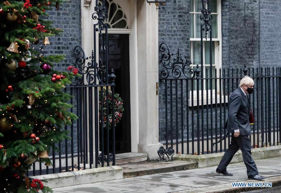 British Prime Minister Boris Johnson leaves 10 Downing Street in London, Britain, on Dec. 9, 2020. Johnson said Wednesday that "a good deal is there to be done" with the European Union (EU) on the post-Brexit trade relations, but he could not accept the terms the regional bloc is currently insisting. (Xinhua/Han Yan)