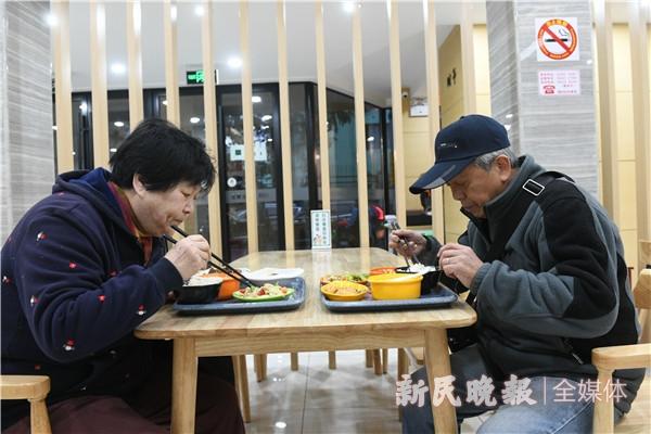 Two elderly people eat at a cafeteria in community in Weifang City, Shandong Province. (Photo/xinmin.cn)