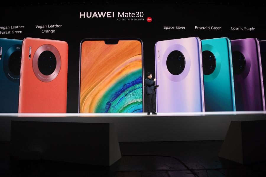 Richard Yu, CEO of Huawei Consumer Business Group, introduces Huawei's Mate 30 Series to guests at a press conference in Munich, Germany, Sept. 19, 2019. (Xinhua/Lu Yang)