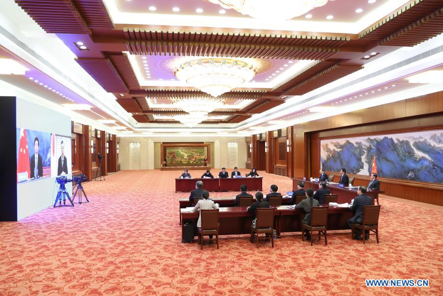 BEIJING, Dec. 15 (Xinhua) -- China's top legislator Li Zhanshu on Tuesday held video talks with Tadamori Oshima, speaker of the House of Representatives of the Japanese parliament, calling for a China-Japan relationship consistent with the needs of the new era.