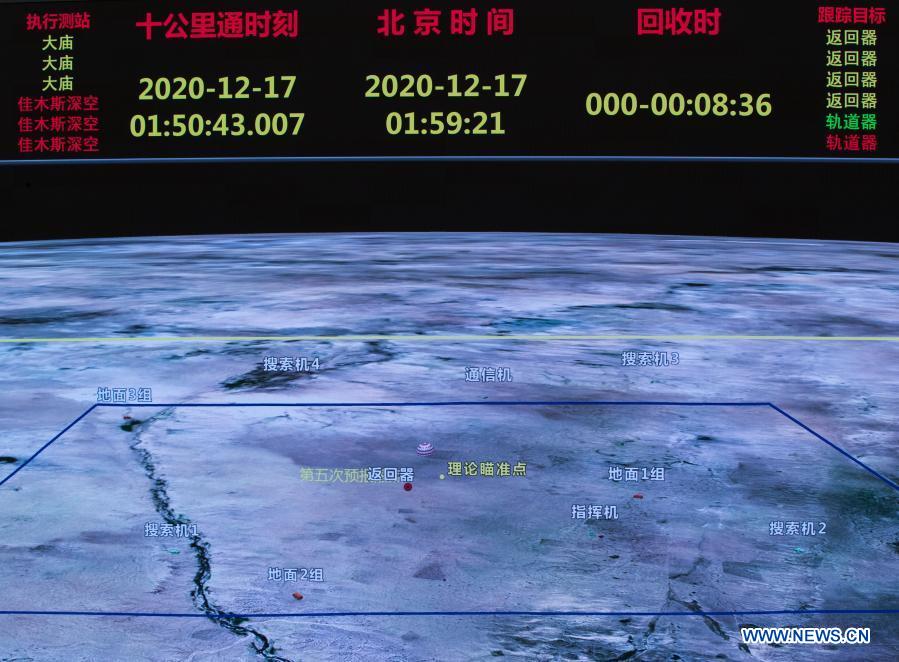 BEIJING, Dec. 17 (Xinhua) -- The return capsule of China's Chang'e-5 probe touched down on Earth in the early hours of Thursday, bringing back the country's first samples collected from the moon, as well as the world's freshest lunar samples in over 40 years.