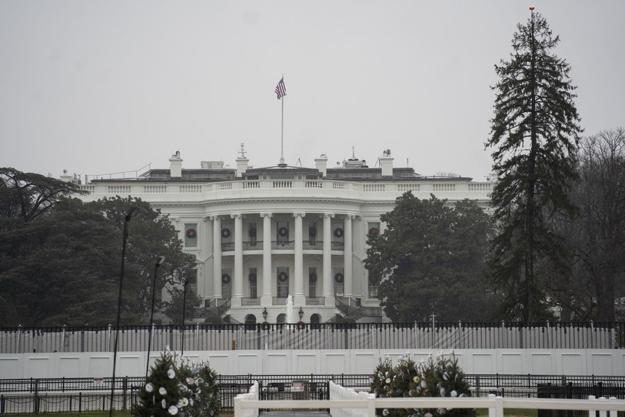 Photo taken on Dec. 14, 2020 shows the White House in the rain in Washington, D.C., the United States. (Xinhua/Liu Jie)