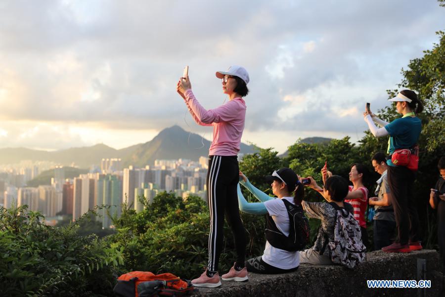 People take photos in a park in Hong Kong, south China, Sept. 11, 2020. (Xinhua/Wu Xiaochu)