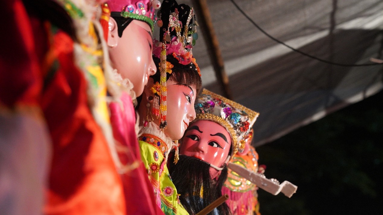 On the stage, Gongzai puppet artists are depicting lives using lifelike puppets, accompanied by unique tunes from traditional instruments.