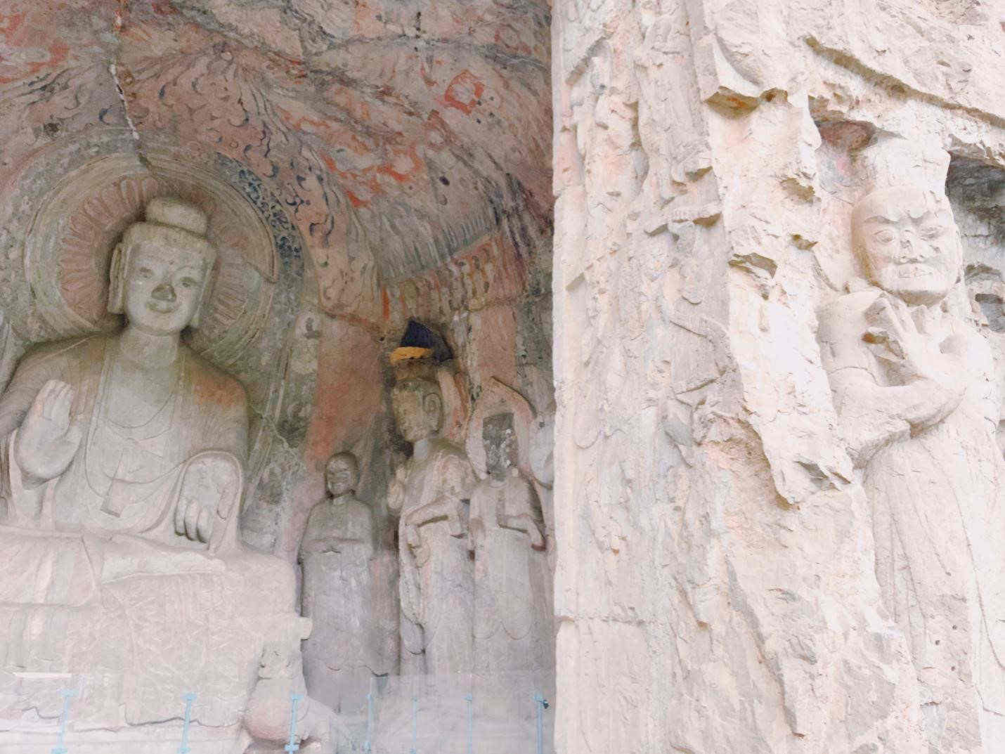 The Big Vairocana (left) is the largest Buddha statue at the Longmen Grottoes. The statue is 17.14m high and has 2m long ears. (People’s Daily Online/Kou Jie)