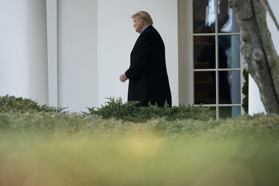 U.S. President Donald Trump leaves the White House in Washington D.C., the United States, on Feb. 28, 2020. (Photo by Ting Shen/Xinhua)