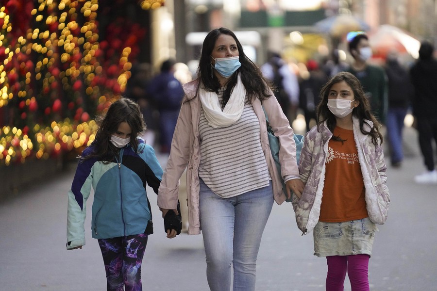 People wearing face masks are seen in New York, the United States, Nov. 27, 2020. (Xinhua/Wang Ying)