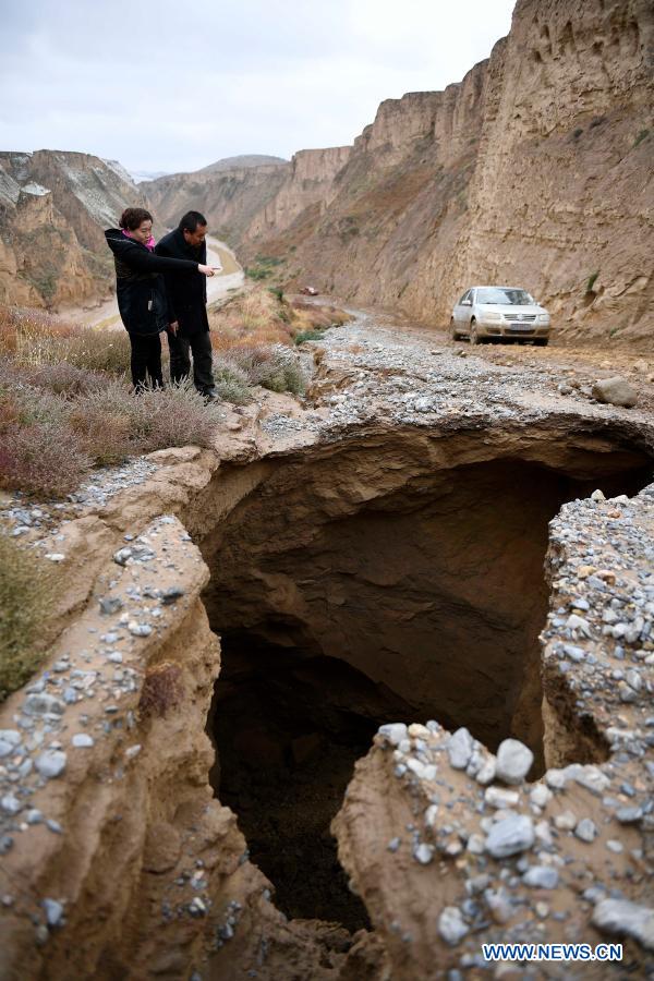Ding Haiyan checks up a big dent caused after a snowfall in the road to Hejiayuan Village of Xihaigu in northwest China''s Ningxia Hui Autonomous Region, Oct. 27, 2016. Xihaigu, a largely mountainous region in northwest Ningxia, was once inflicted by deep poverty and labeled the "most unfit place for human settlement" by the United Nations in the 1970s due to land reclamation, drought, and a fragile ecological environment. On Nov. 16, 2020, Xihaigu historically bid farewell to absolute poverty, during which "she power" played an indispensable role. Ding Haiyan, 55, is chairwoman of the trade union of water supplies bureau of Wuzhong City in Ningxia. She transferred to Hejiayuan Village in Yuwang Township of draught-haunted county of Tongxin in central Ningxia in 2015 starting her new career as a poverty alleviation cadre. To Ding''s great disappointment, most villagers there were seniors or the disabled who had no access to paved roads and electric power for industrial purposes, and little confidence in her will and power. Despite these, Ding insisted on making door-to-door visits to get her head around the basic situation there. She came up with a two-pillar strategy to simultaneously improve villagers'' income and infrastructure in the village. She also tailored individual poverty-alleviation plans for each household in the village. Started with livestock breeding, villagers had more and more confidence in Ding as they saw steadily increasing income. Ding also managed to multiply the villagers'' sources of income by encouraging production of specialty grains like millet and buckwheat. Thanks to her efforts, a paved road was also accomplished to bring output of the village to wider markets. Looking at an almost ready canteen for senior citizens, the last one of her promises to the villagers in Hejiayuan, Ding admitted that she occasionally shed tears due to the difficulties she had to confront, but she would never forget the villagers'' eyes with expectation and her responsibility for them. (Xinhua/Wang Peng)