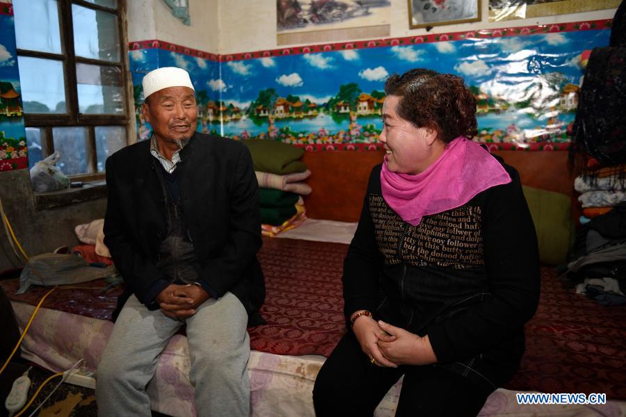 Ding Haiyan visits a villager''s home in Hejiayuan Village of Xihaigu in northwest China''s Ningxia Hui Autonomous Region, Oct. 27, 2016. Xihaigu, a largely mountainous region in northwest Ningxia, was once inflicted by deep poverty and labeled the "most unfit place for human settlement" by the United Nations in the 1970s due to land reclamation, drought, and a fragile ecological environment. On Nov. 16, 2020, Xihaigu historically bid farewell to absolute poverty, during which "she power" played an indispensable role. Ding Haiyan, 55, is chairwoman of the trade union of water supplies bureau of Wuzhong City in Ningxia. She transferred to Hejiayuan Village in Yuwang Township of draught-haunted county of Tongxin in central Ningxia in 2015 starting her new career as a poverty alleviation cadre. To Ding''s great disappointment, most villagers there were seniors or the disabled who had no access to paved roads and electric power for industrial purposes, and little confidence in her will and power. Despite these, Ding insisted on making door-to-door visits to get her head around the basic situation there. She came up with a two-pillar strategy to simultaneously improve villagers'' income and infrastructure in the village. She also tailored individual poverty-alleviation plans for each household in the village. Started with livestock breeding, villagers had more and more confidence in Ding as they saw steadily increasing income. Ding also managed to multiply the villagers'' sources of income by encouraging production of specialty grains like millet and buckwheat. Thanks to her efforts, a paved road was also accomplished to bring output of the village to wider markets. Looking at an almost ready canteen for senior citizens, the last one of her promises to the villagers in Hejiayuan, Ding admitted that she occasionally shed tears due to the difficulties she had to confront, but she would never forget the villagers'' eyes with expectation and her responsibility for them. (Xinhua/Wang Peng)