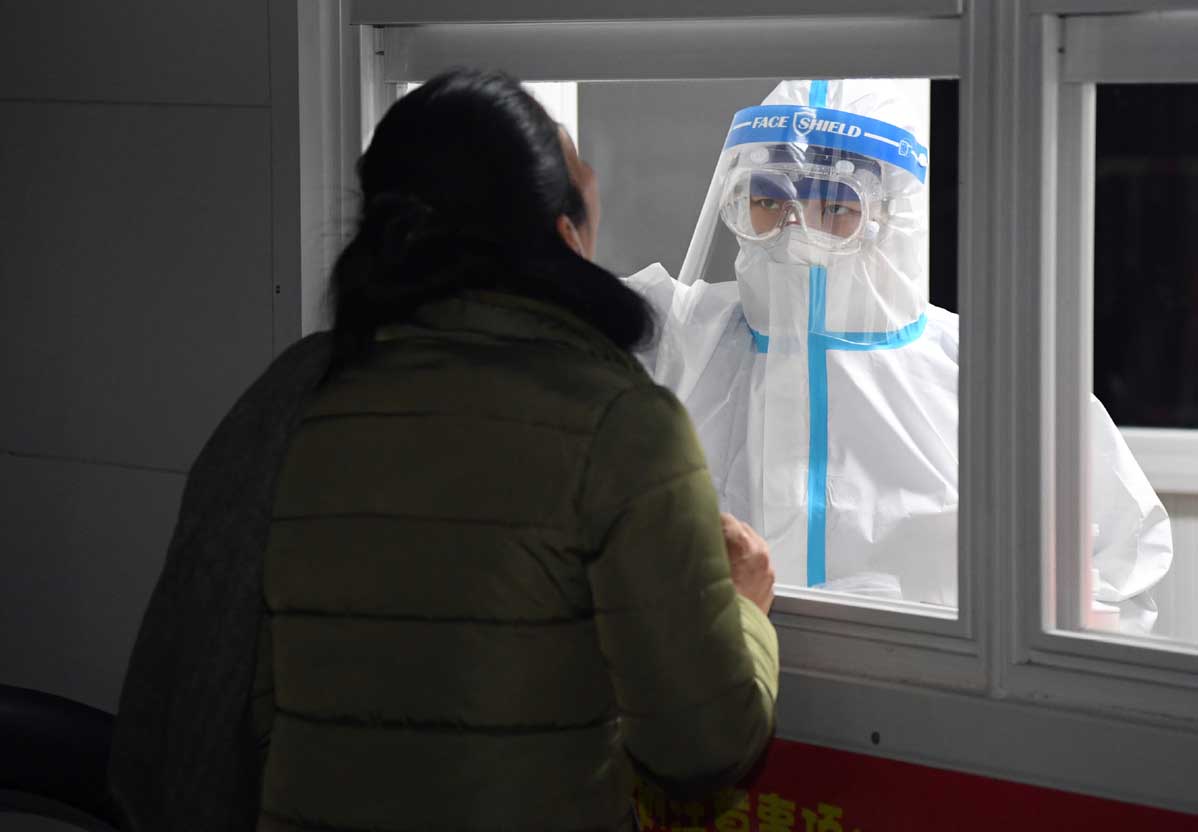 A medical worker collects samples from a man to conduct nucleic acid test at a sampling site in Shunyi District of Beijing, China, Dec 26, 2020. [Photo/Xinhua]