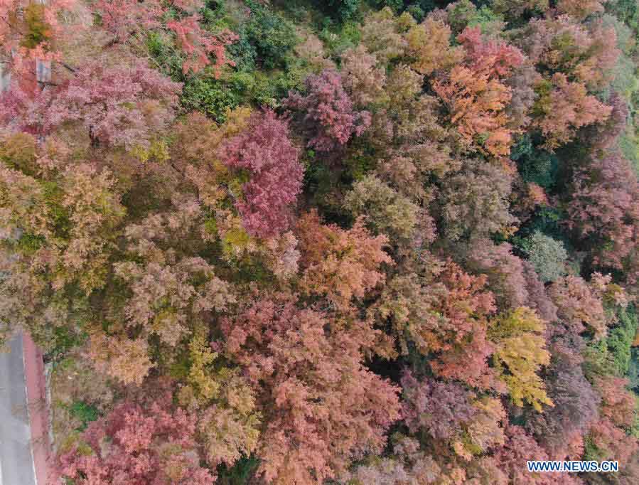 Aerial photo taken on Dec. 26, 2020 shows the scenery of Shimen National Forest Park in Conghua District of Guangzhou City, south China's Guangdong Province. (Xinhua/Deng Hua)
