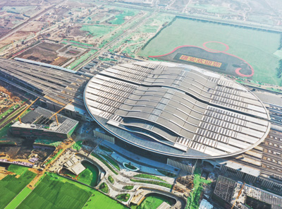 With a designed top speed of 350 kilometers per hour, it has cut the travel time between the Beijing West Railway Station and Xiong'an New Area to about 50 minutes, and that between the Beijing Daxing International Airport, a station along the railway, and Xiong'an to about 19 minutes.