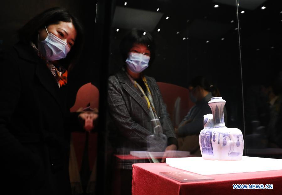 People view maritime relics at an exhibition in China Maritime Museum in Shanghai, east China, Dec. 28, 2020. The Exhibition of Chinese Ancient Maritime Relics opened in Shanghai's China Maritime Museum on Monday, displaying over 160 ancient maritime relics from 25 domestic museums. (Xinhua/Fang Zhe)