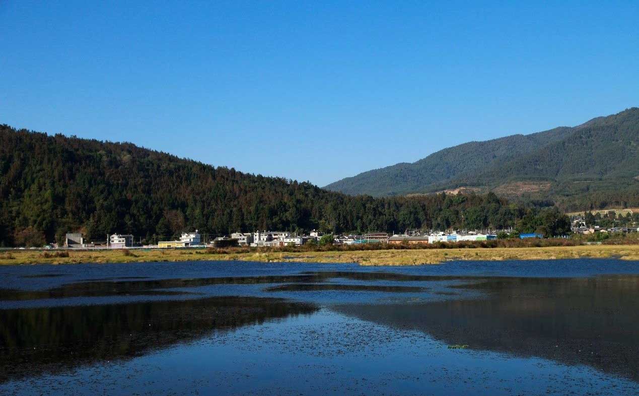 The unique plateau volcanic barrier lake ecosystem of the Beihai Wetland was formed by a volcanic eruption millions of years ago. Covering an area of about 16 square kilometers, the wetland park is renowned for its tranquil scenery, which is dominated by water and the surrounding mountains.